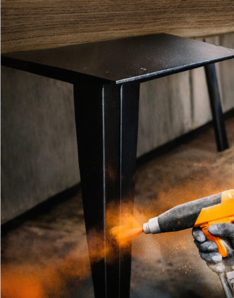 Metal ayaklardan masa sistemlerine kadar tüm ürünlerde kullanılan bu teknoloji, kalite standardını en üst seviyeye çıkarır.